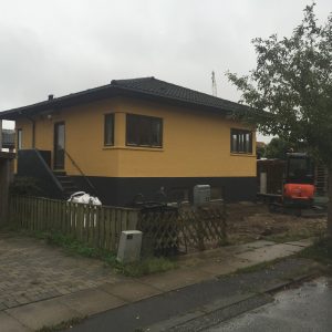 Kunden havde brug for mere plads og valgte at få etableret en ny første sal.Vi lavede en helt ny tagkonstruktion, og lagde et flot sort tegltag. 3 store kviste, samt flere ovenlysvinduer blev monteret på huset.