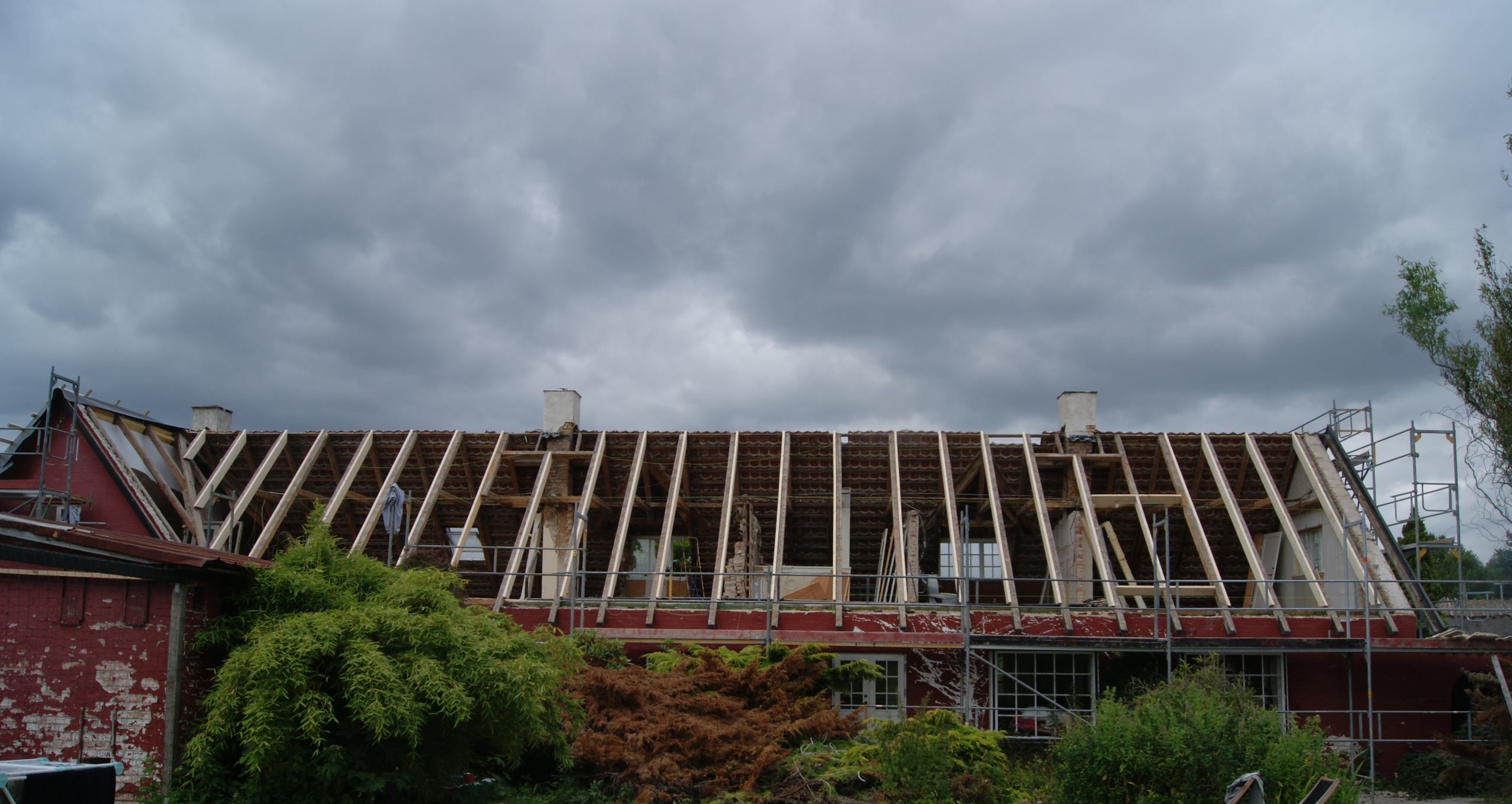 I denne gamle villa i Hillerød lagde vi nyt taget og lavet en komplet renovation af 1. salen. Sidst men ikke mindst har vi etableret helt nyt badeværelse.